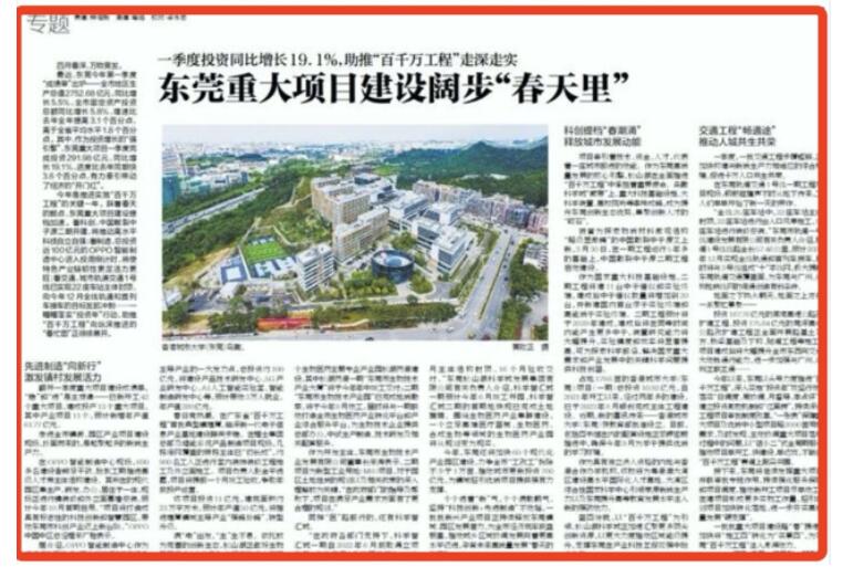南方日?qǐng)?bào)要聞|壹季度投資比增19.1%!東莞重大項(xiàng)目助推“百千萬(wàn)工程”走深走實(shí)