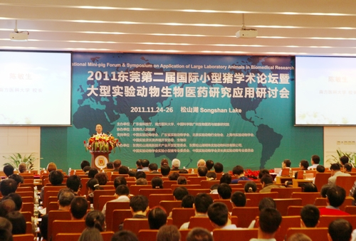 “2011第二屆國際小型豬學術論壇暨大型實驗動物生物醫(yī)藥研究應用研討會”於11月25-26日在東莞松山湖召開。 科技部生物技術發(fā)展中心鄭玉果處長,中國實驗動物學會常務副理事長兼秘書長秦川,廣東省人民..
